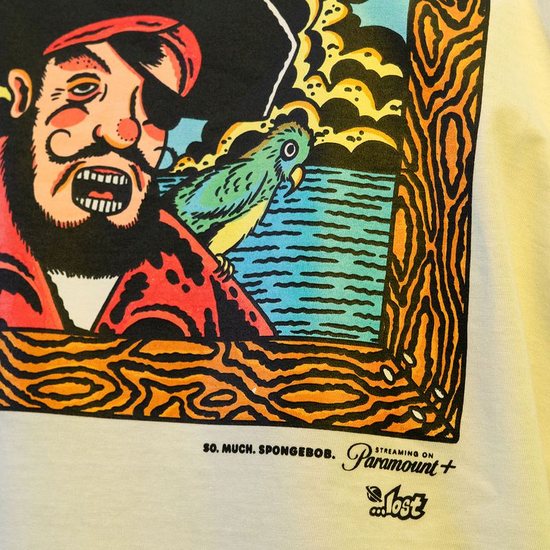 · Estampa frontal Bob Esponja X Lost no peito lateral.