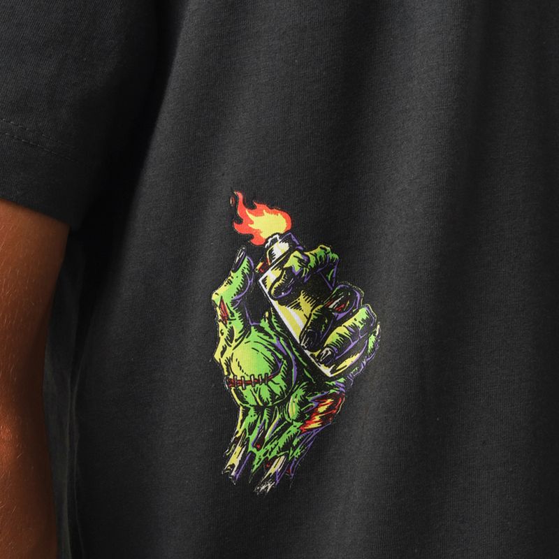 · Estampa frontal zombie saturno no peito lateral.